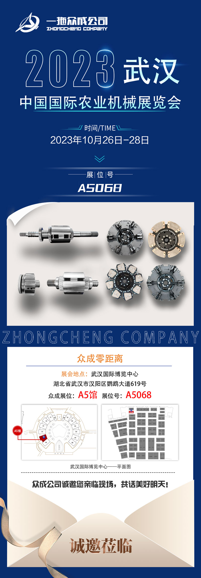 展位號(hào)A5068-2023年中國(guó)國(guó)際農(nóng)業(yè)機(jī)械展覽會(huì) 一拖眾成公司誠(chéng)邀蒞臨